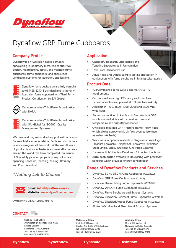 • Dynaflow GRP Fume Cupboards (AS2243.8)