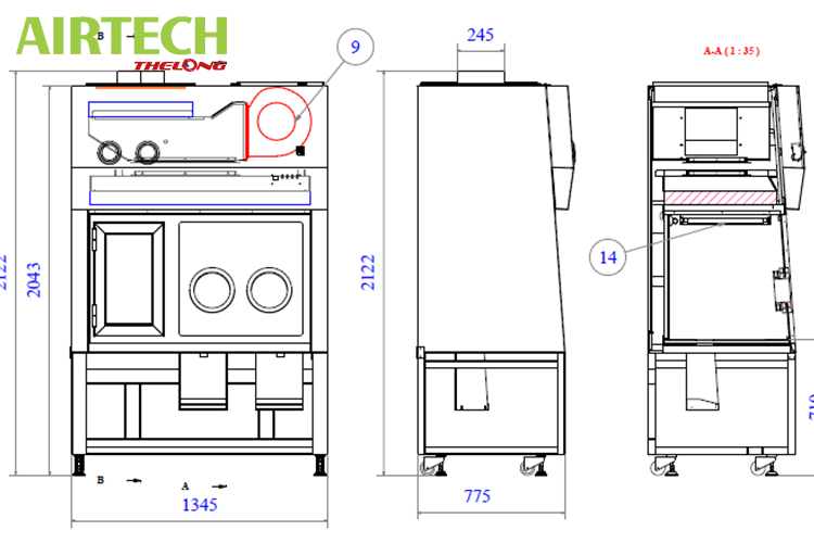 Airtech Thế Long xin gửi đến quý khách thông số kỹ thuật, bản vẽ của tủ pha hóa chất như sau: