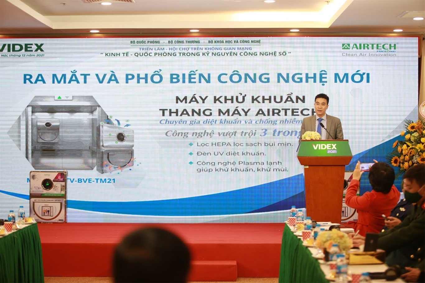 Công ty Cổ phần Airtech Thế Long đã ra mắt và phổ biến công nghệ mới: máy khử khuẩn thang máy Airtech công nghệ Plasma, đèn UV, lọc Hepa có tác dụng khử mùi, khử khuẩn và nấm mốc, lọc sạch bụi mịn,… chiều ngày 16.12.2021, tại trung tâm Triển lãm Hội chợ Trên không gian mạng, Kinh tế Quốc phòng trong kỷ nguyên số ở Hà Nội.