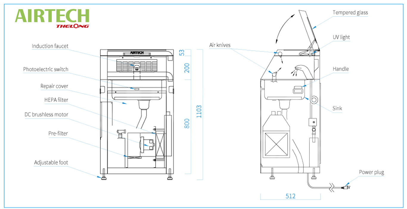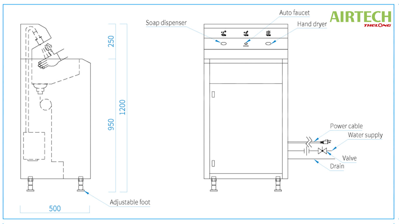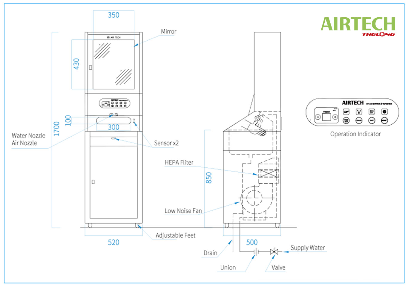 Thông số kỹ thuật máy rửa tay sấy khô Airtech Thế Long