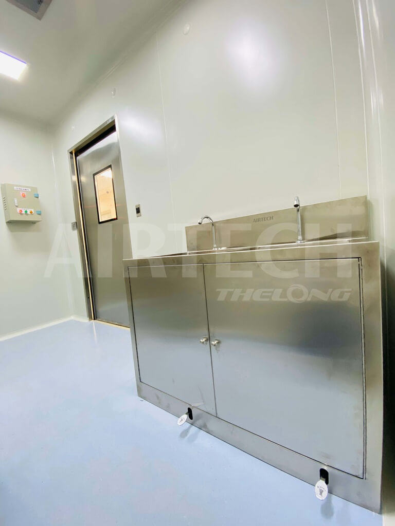 Bồn rửa tay đôi là thiết bị cần thiết để đảm bảo vệ sinh cá nhân cho nhân viên trước khi vào các khu vực phòng sạch. Bồn của Airtech Thế Long được thiết kế thông minh, giúp tiết kiệm không gian và tạo điều kiện thuận lợi cho việc rửa tay nhanh chóng và hiệu quả.