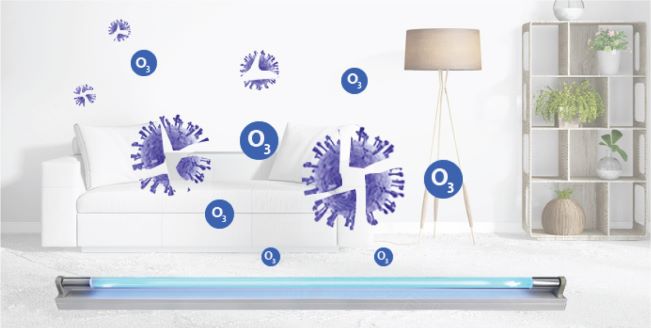 Để diệt khuẩn, máy được trang bị 1 đèn UV-C với bước sóng 245 nm, có khả năng phá hủy cấu trúc DNA của vi khuẩn, vi-rút.