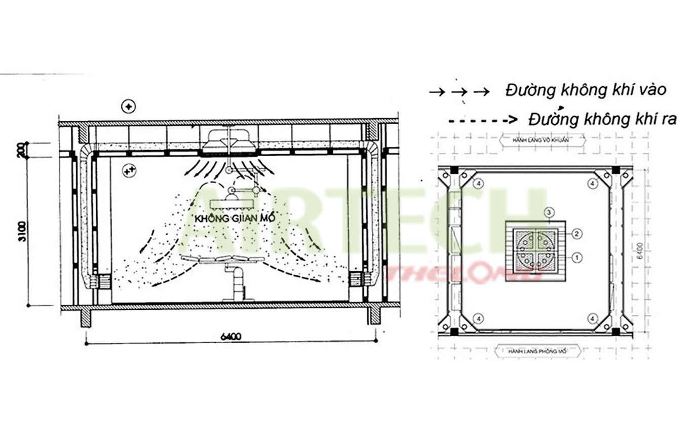 Áp suất dương để ngăn không khí và vi khuẩn từ khu vực bên ngoài xâm nhập.