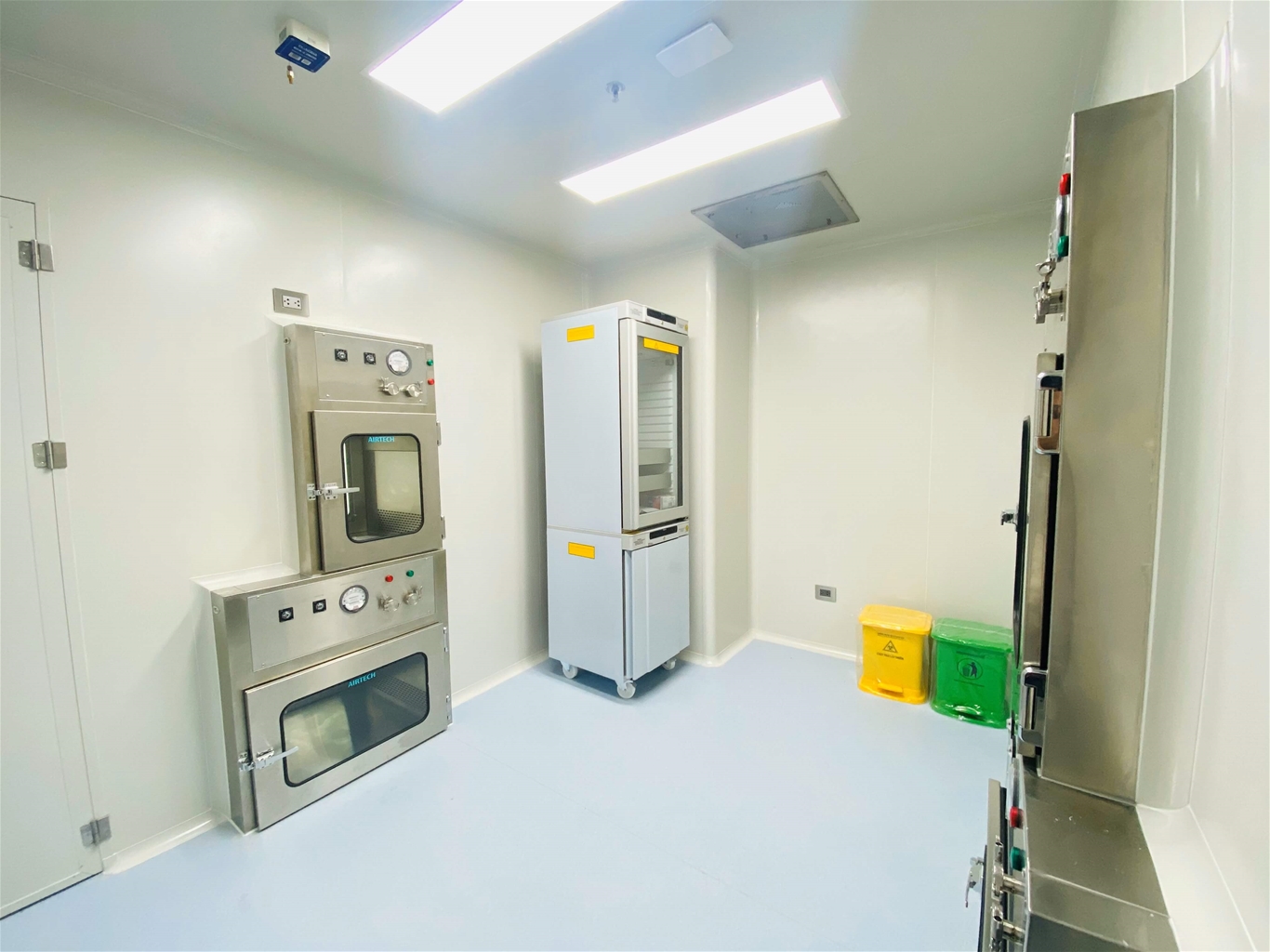 Phòng sạch Class-6 không chỉ yêu cầu hệ thống passbox mà còn cần sự đồng bộ trong thiết kế nội thất. Trần và vách panel được lắp đặt với các vật liệu chuyên dụng, giúp tạo ra một không gian sạch sẽ và dễ dàng bảo trì. Sàn vinyl cũng là một phần quan trọng, không chỉ mang lại tính thẩm mỹ mà còn đảm bảo khả năng chống bám bẩn, dễ dàng vệ sinh.